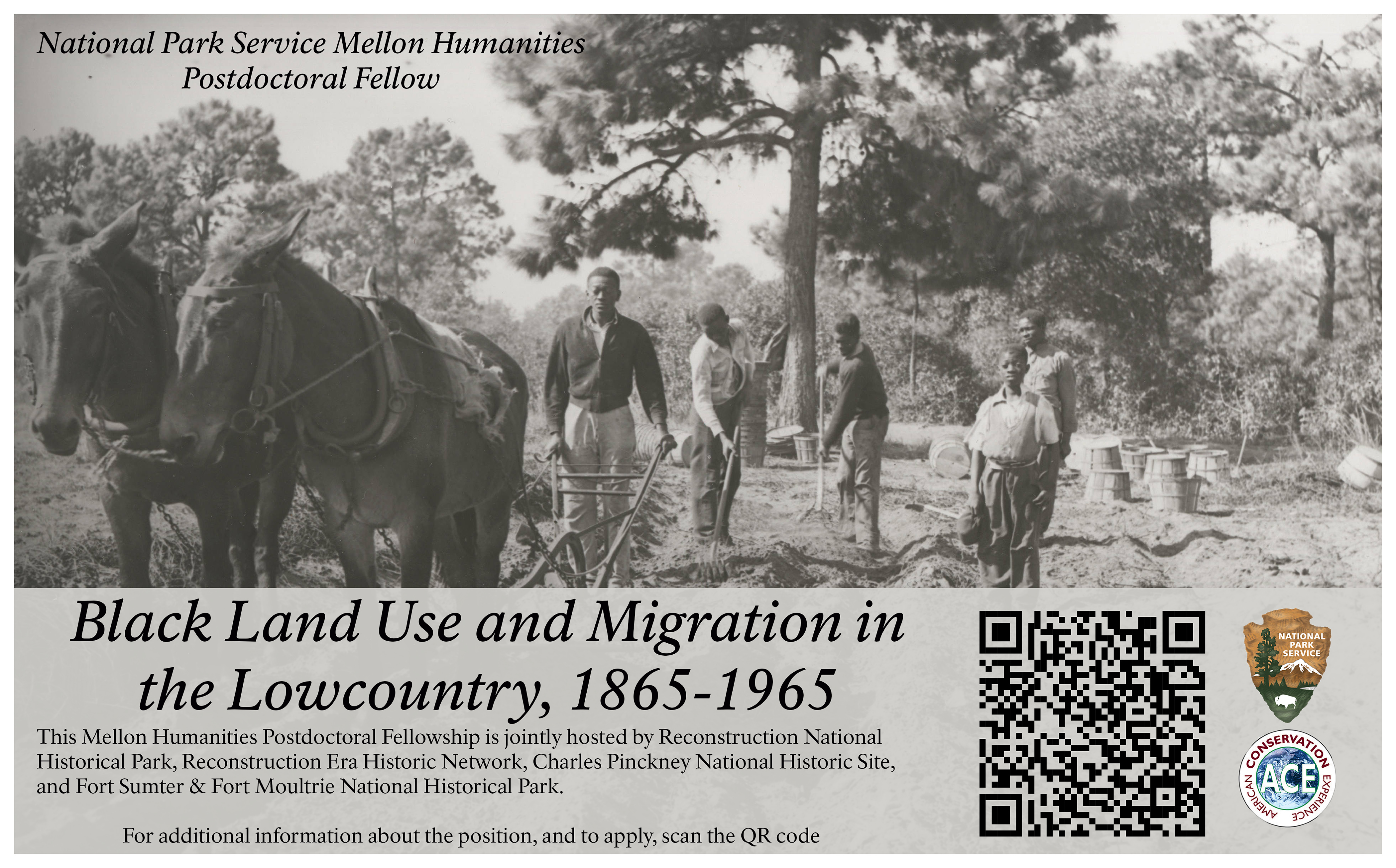 With Reconstruction Era NHP and Network, CHPI and FOSU will be hosting a fellow to research Black land use and migration patterns in the South Carolina Lowcountry from 1865 to 1965. I am working with REER to distribute this announcement widely. Scholars who received or will receive their PhD in relevant fields between May 1, 2019, and August 15, 2024, are eligible to apply.