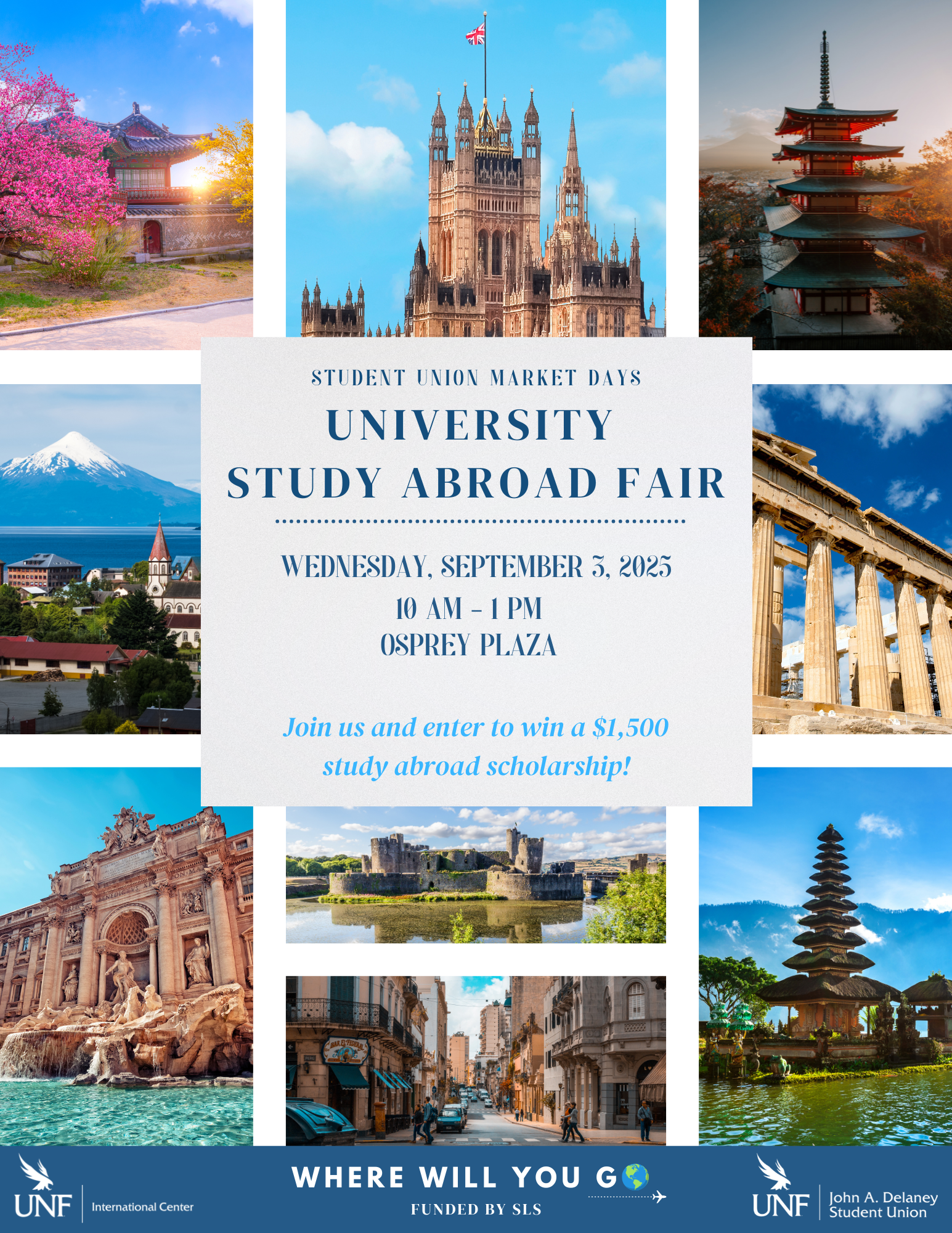 Attached you will find a flyer advertising UNF’s upcoming Study Abroad Fair on 9/3. A non-trivial number of DHI faculty are running study abroad programs this year, so please distribute widely and let your students know!