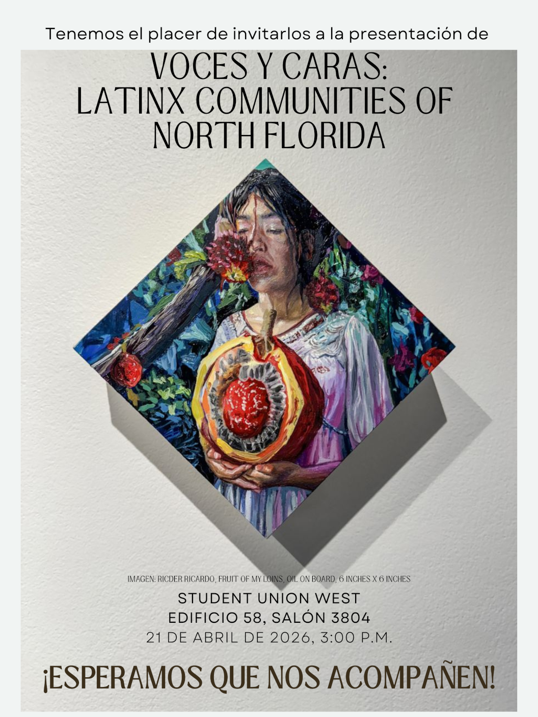 The annual spring presentation of the interviews of Voces y Caras: Latinx Communities of North Florida<https://vocesycaras.unfdhi.org/> will take place on Tuesday, April 21, at 3 PM, in Student Union West, Room 3804. Please see the attached for more information. You can contact Dr. Constanza López Baquero, constanza.lopez at unf.edu, with any questions.